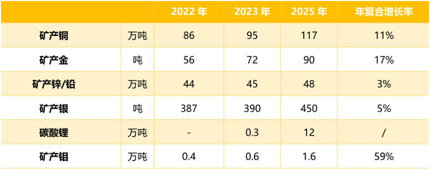 紫金擴產(chǎn)計劃很明確,卡莫阿-卡庫拉銅礦等諸多世界級礦山仍在擴張期,去年收購南美洲最大的在產(chǎn)金礦之一 Rosebel 金礦、收購國內最大金礦海域金礦30%權益,收購 20%股權成為招金礦業(yè)第二大股東,強勢收購打下了其礦產(chǎn)金第二階的高增長的基礎。按照2023年1月30日新修訂的《三年(2023-2025 年)規(guī)劃和 2030年發(fā)展目標綱要》,明確到2030年綜合指標排名進入全球一流礦業(yè)公司行列,銅、金礦產(chǎn)品產(chǎn)量進入全球 3-5 位,鋰進入全球前10位,發(fā)展規(guī)劃清晰,成長潛力較大。