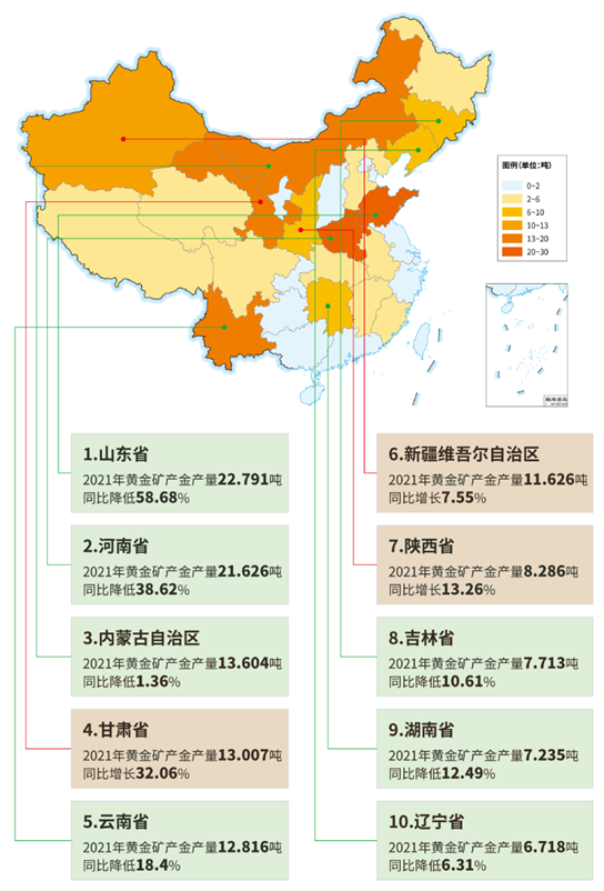 2021年,新疆黃金產(chǎn)量11.626噸,位列全國第五。